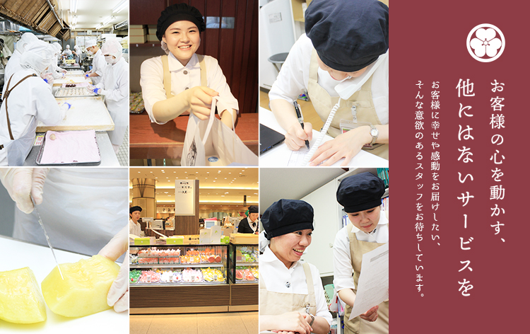 素材選び、技術向上、商品管理、社員教育に力を尽くし美味しいお菓子作りに取り組んでいます。